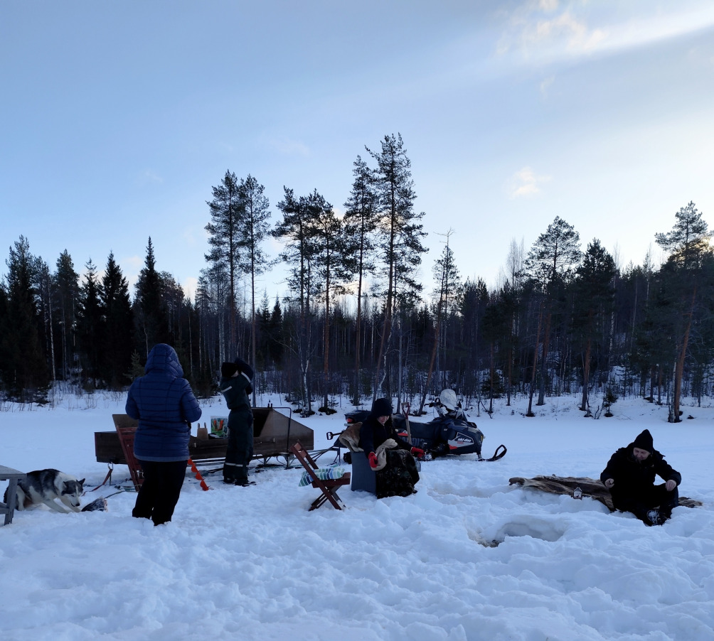 Eisangeln ist für die ganze Familie geeignet. Die Ausbeute ist meistens bescheiden aber das gemeinsame Erlebnis auf dem Eis ist das besondere. Löcher ins Eis bohren, Angel rein halten und abwarten. Parallel kann auf einer Feuerstelle gegrillt und Kaffe ode Tee zubereitet werden.