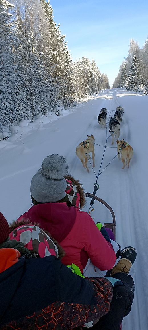 Je nach Temperatur und Schneeverhältnissen dauert eine Schlittenfahrt etwa eine Stunde. Die Streckenlänge beträgt 6 bis 10 Kilometer.
