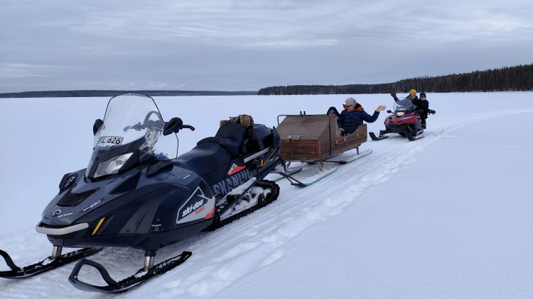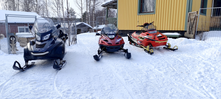Für eine Schneemobiltour stehen mehrere Fahrzeuge (Ski Doo, Yamaha, Lynx, Polaris) für sechs Personen zur Verfügung. Begleitet werdet ihr von einem Tourenführer durch Wälder und über Seen, auf Strecken, die auf keiner Karte zu finden sind!
