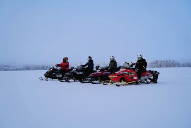 Für eine Schneemobiltour stehen mehrere Fahrzeuge (Ski Doo, Yamaha, Lynx, Polaris) für sechs Personen zur Verfügung. Begleitet werdet ihr von einem Tourenführer durch Wälder und über Seen, auf Strecken, die auf keiner Karte zu finden sind!